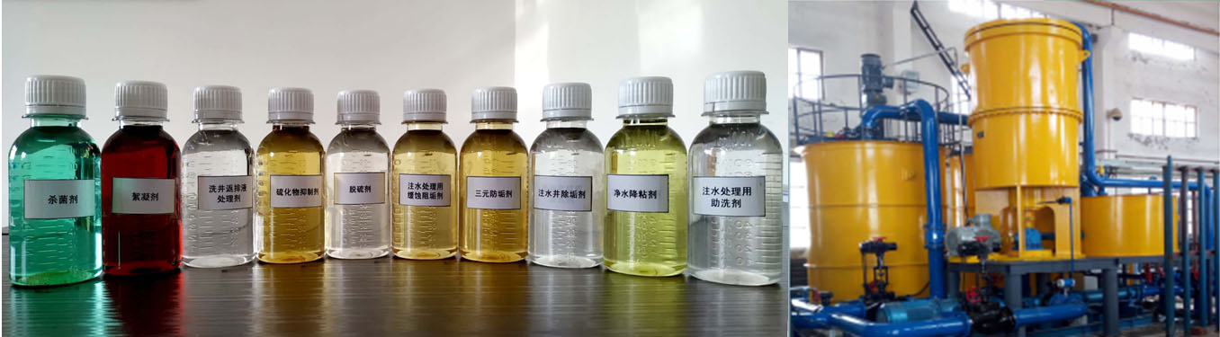 針對油田的實際情況,公司開發油田水處理助劑共10余種。產品主要包括:殺菌劑系列產品三項、絮凝劑、洗井返排液處理劑、硫化物抑制劑、脫硫劑、注水處理用緩蝕阻垢劑、三元防垢劑、除垢劑、凈水降粘劑、注水處理用助洗劑等產品,目前廣泛應用在大慶油田。
